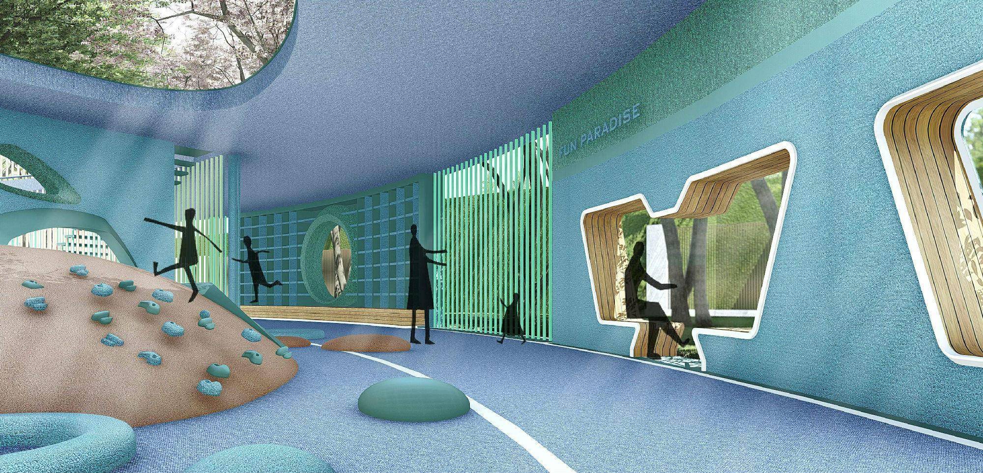 通过对幼童、小童、大童等年龄段的人群进行分析解读,深入思考人性化的空间细节,划分为0-3岁、4-6岁、7-12岁区域,几乎把小孩12岁之前的需求,全部考虑到了。